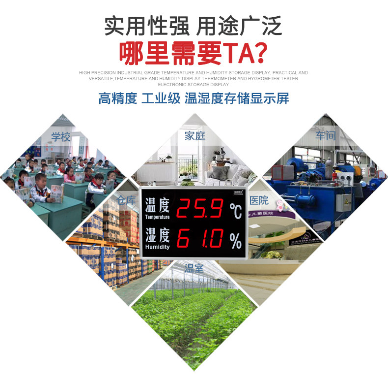 产品诠释 》》》 这款温湿度记录仪是采用国际新科技生产的具温度、湿度采集、显示、记录功能的工业用温湿度采集显示设备为工业用温湿度显示屏,选用进口温湿度传感器,每台温湿度显示屏都经过校准,测量精度高,性能稳定可靠,适用于需要精确可靠检测温度、湿度的用户。具有大容量记录功能,可设置记录间隔时间、记录仪自动记录保存温湿度数据和报警信息,记录数据量比同类产品高50%以上。自带数据库及存储功能,可连续记载50年以上的温湿度数据,多台记录仪集中管理与数据下载,方便保存及数据备份。可以采用以太网、RS232或RS485接口下载数据记录。具有数据、报警查询、绘制温湿度曲线、EXCEL报表输出、图像及数据打印功能。可选配声光报警功能,当温湿度超限时,发出声光报警信号,适合工厂车间、实验室、仓库、机房使用。