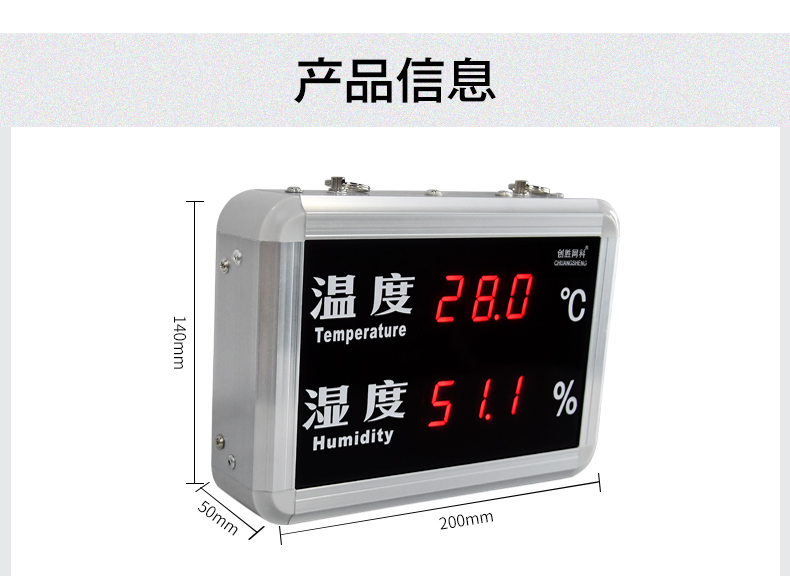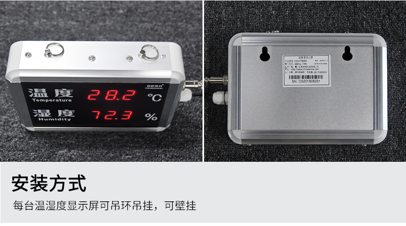 产品诠释 》》》 这款是工业用温湿度显示屏,选用国际著名厂商的温湿度传感器,高精度显示,性能稳定可靠。已通过国家计量检测中心、富士康华南检测中心的检验和认证,适合工厂车间、无尘室、实验室、仓库、机房等场所使用。提供RS485通信接口、协议和例程,可以通过计算机直接采集、校准温湿度数据,可以方便的将该产品整合到用户监控或管理系统中;已与合作软件公司开发出温湿度监测管理系统,可实现各个温湿度采集点数据的采集、存储、查询绘制曲线及生成报表等功能