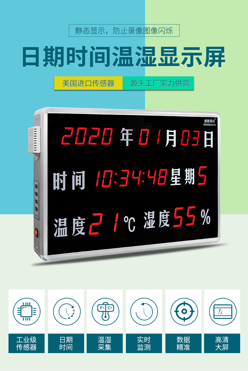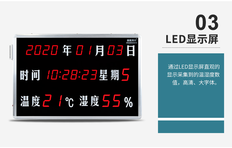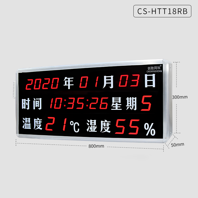 创胜网科 日期时间温湿度计工业级温湿度显示屏大尺寸CS-HTT18RB