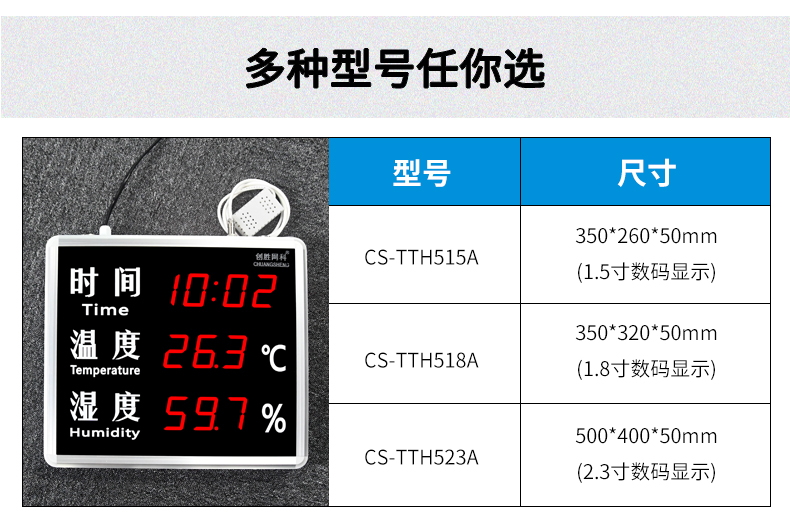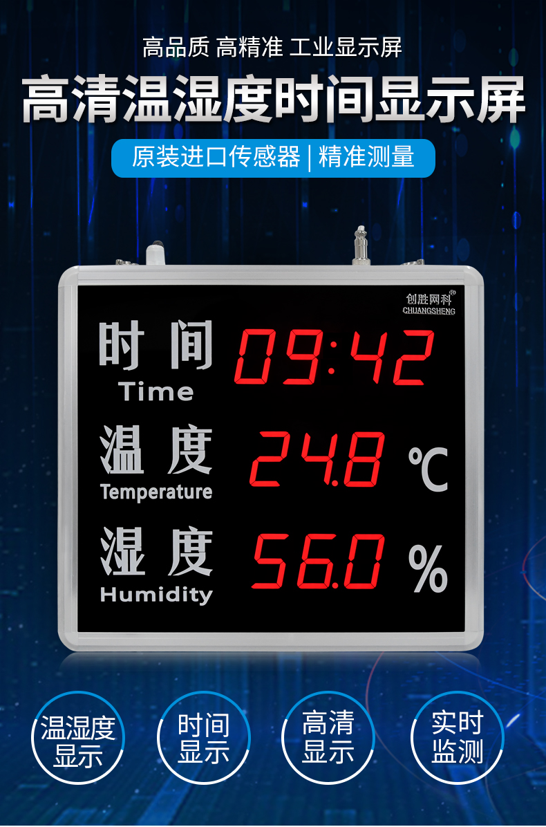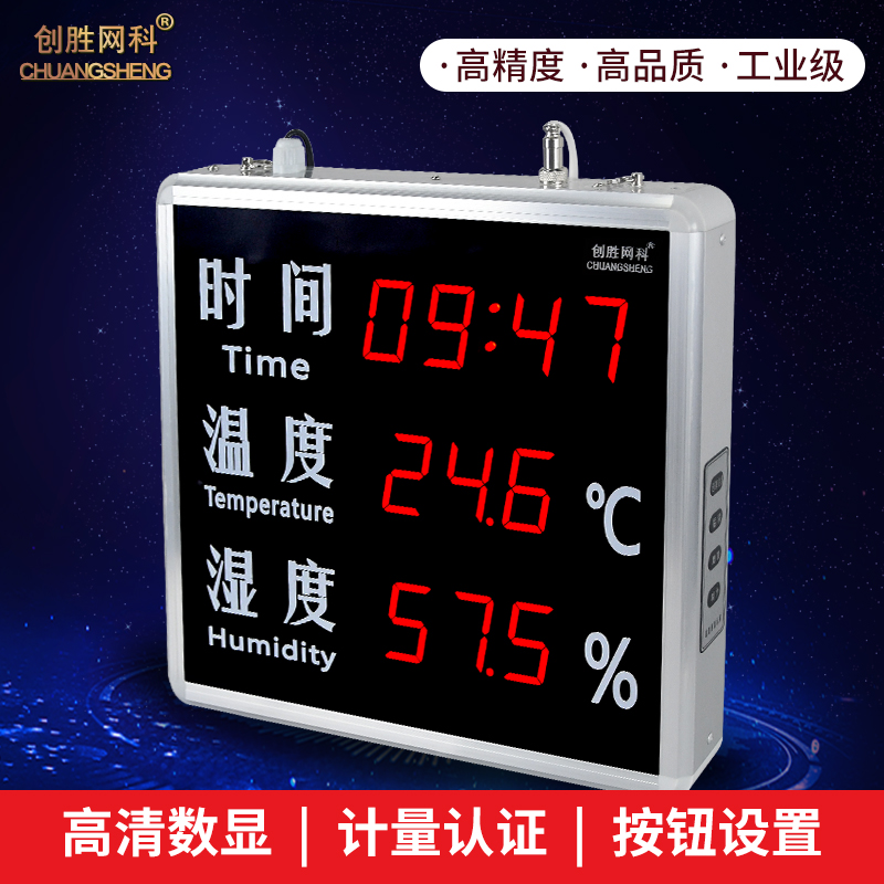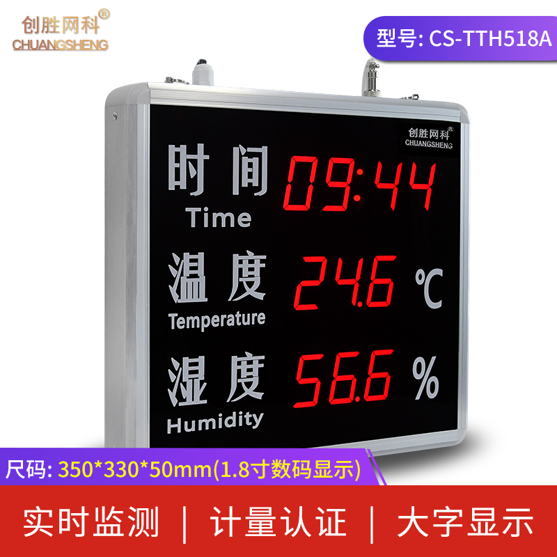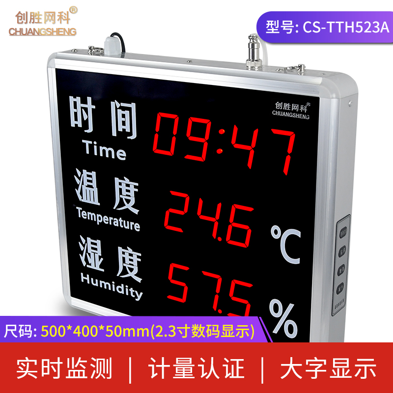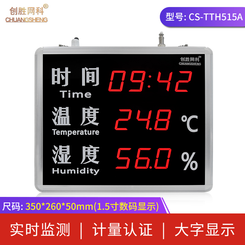 创胜网科 工业级温湿度计大尺寸带时间温度湿度显示屏CS-TTH515A